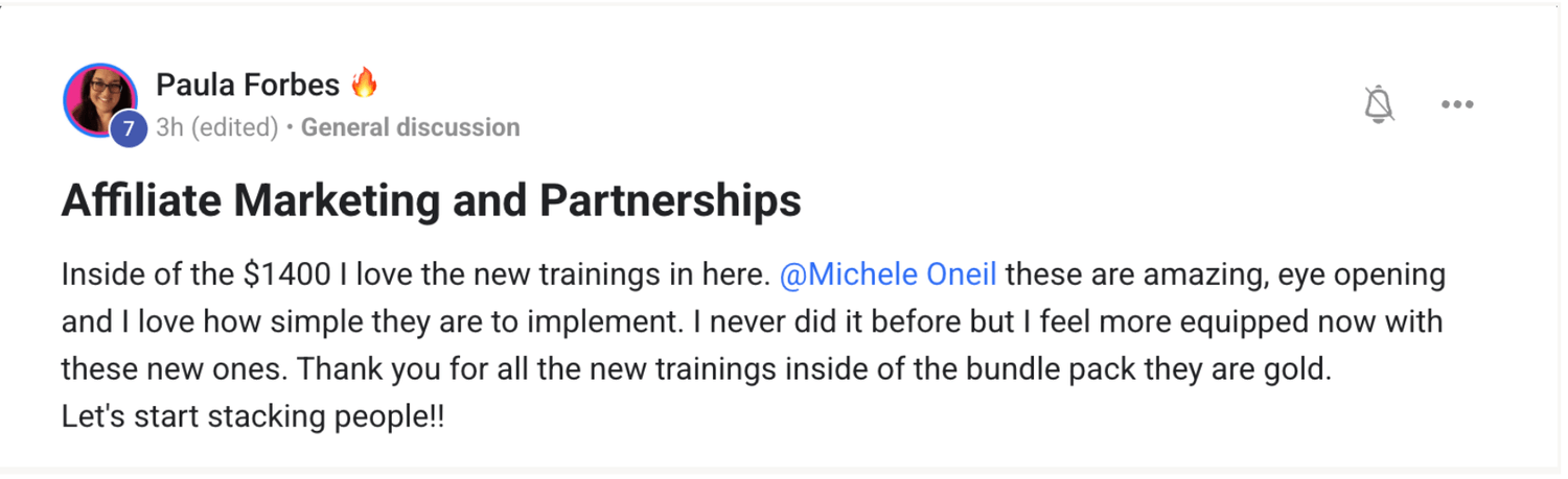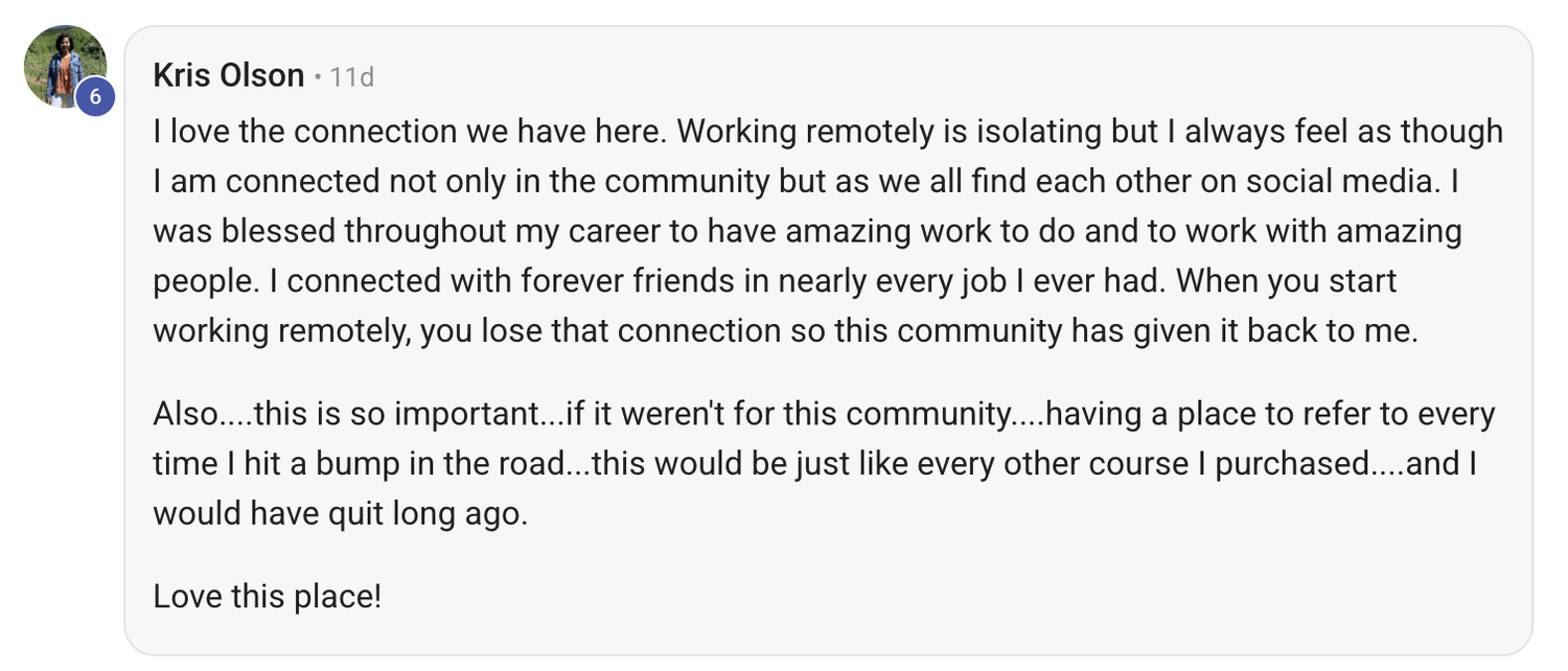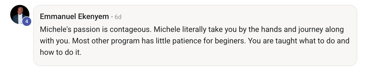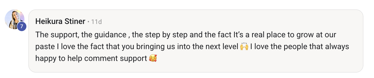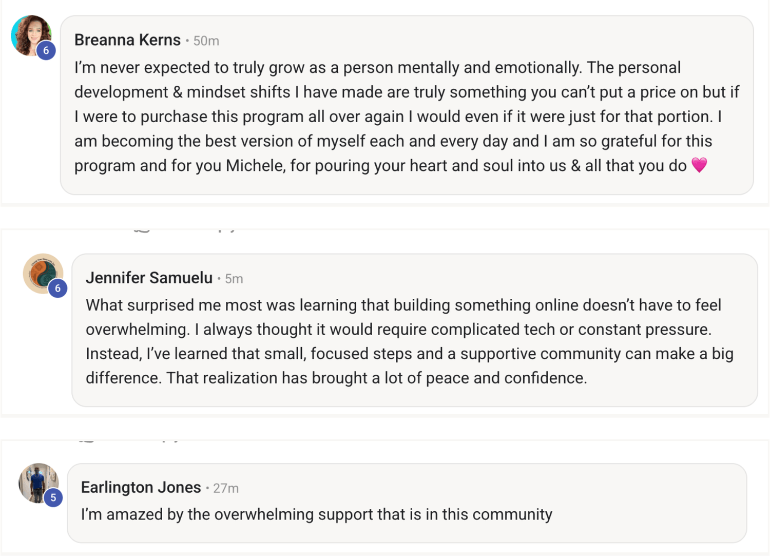 With our program, you’ll experience real-time growth through LIVE mentoring sessions, live tech zoom calls, community support by members, replays of calls, and a search function to find answers in the community. There are no other programs that offer this level of support. Access to the community is a free exclusive bonus and doesn't cost anything extra to you! The support is solely funded by the creators.