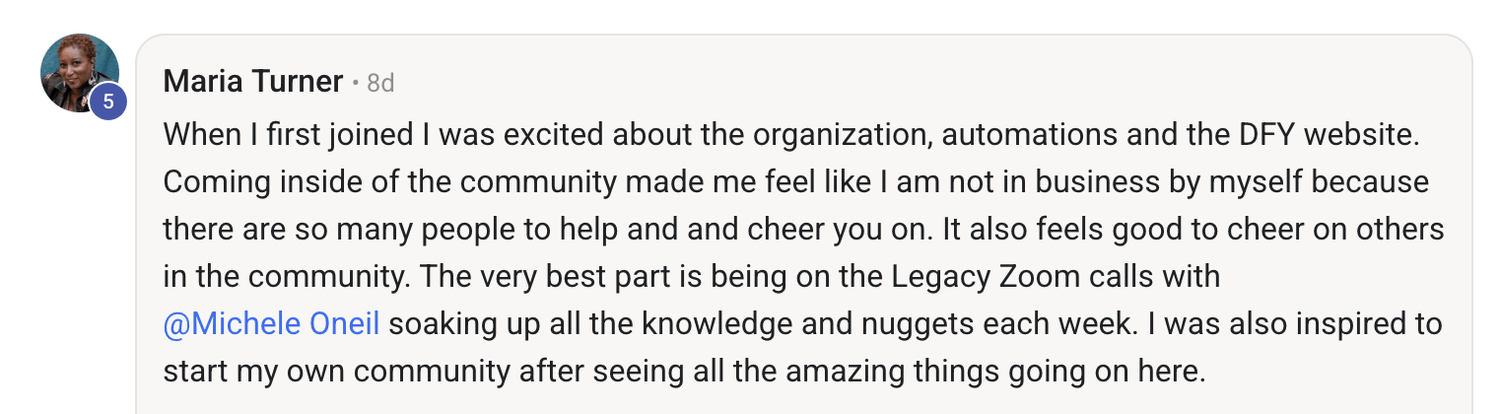 The real power of Legacy Builders comes from the LIVE coaching & mentorship. You’ll have access to weekly interactive Zoom calls led by six-figure coaches and premium mentors, where you can ask questions, get personalized guidance, & get real-time support.